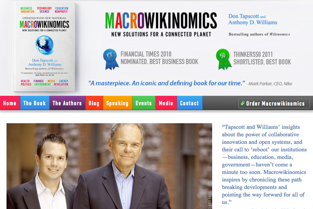 Worked with internationally respected authors Don Tapscott and Anthony Williams as part of the core research team in the production of the book Macrowikinomics, which discusses how digital innovations and collaborative technologies are reshaping industries around the world. I conducted extensive research, fact checking, editing, and writing for a 424 page manuscript under tight deadlines, and prepared a pitch for the CBC Radio series, ReCivilization. Sequel to the bestselling Wikinomics, this book was endorsed by the CEOs of Google, Nike, Dell, Ogilvy, Best Buy, and Accenture, and was a finalist for the Financial Times Best Book Award.