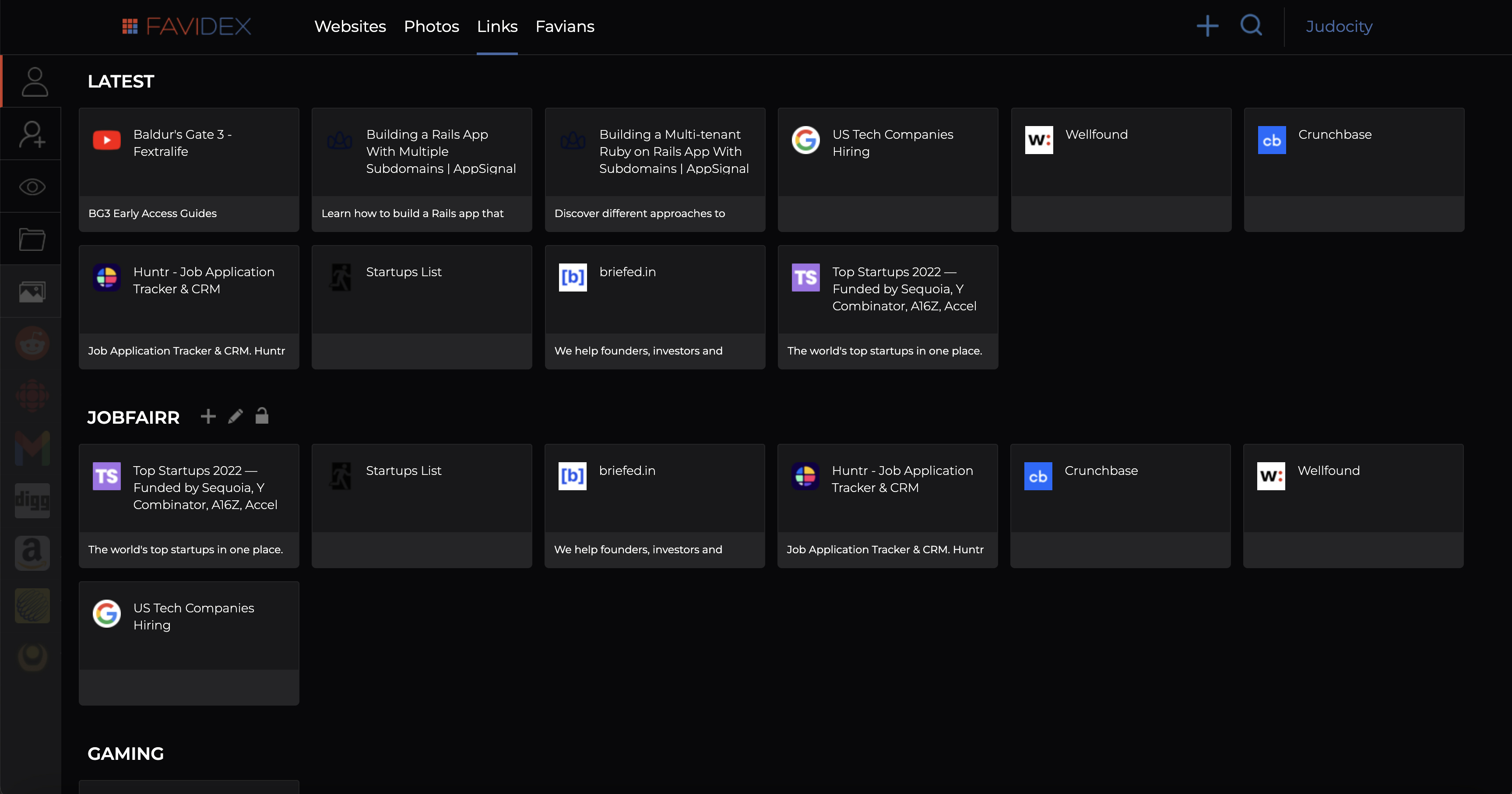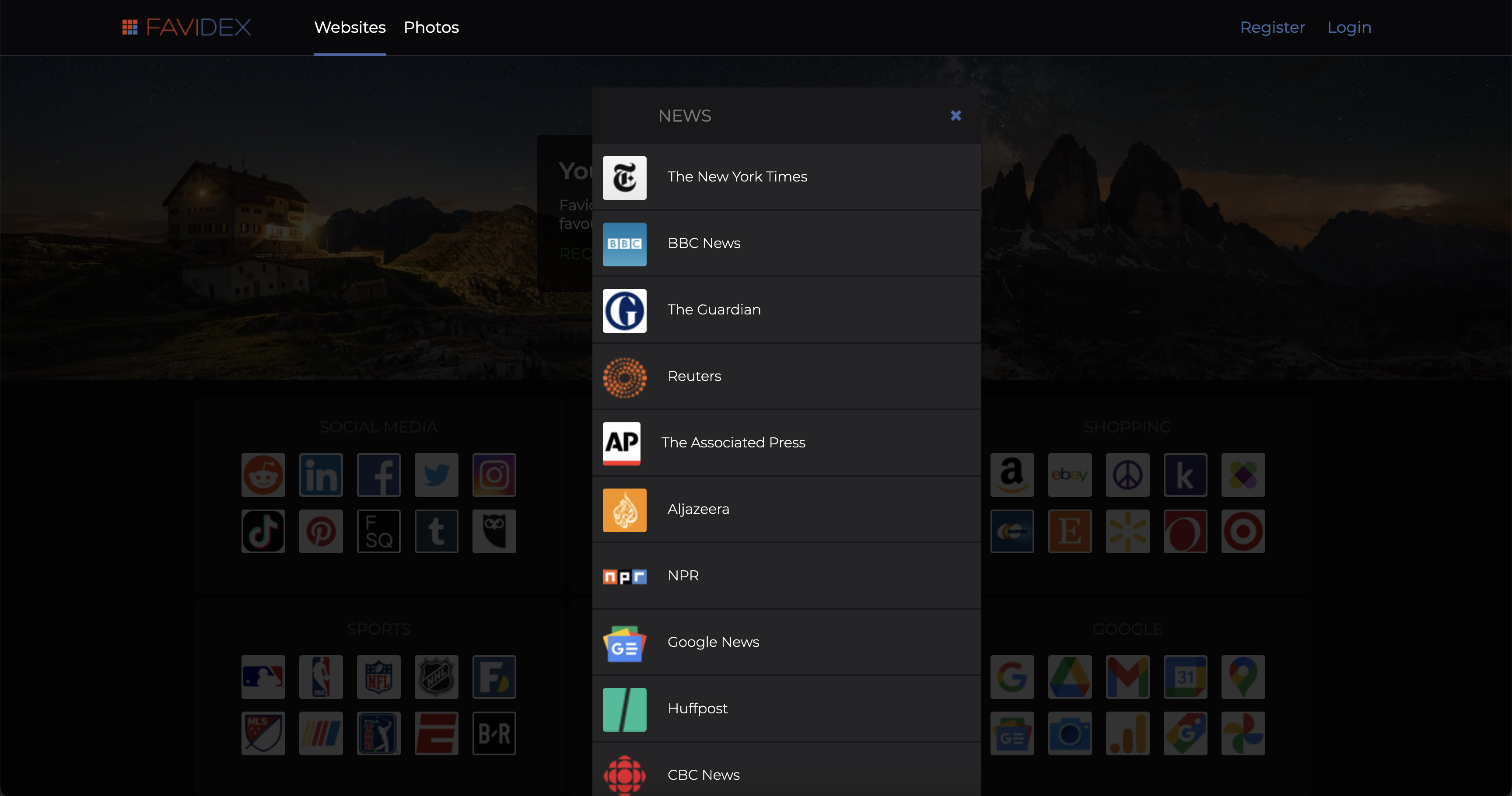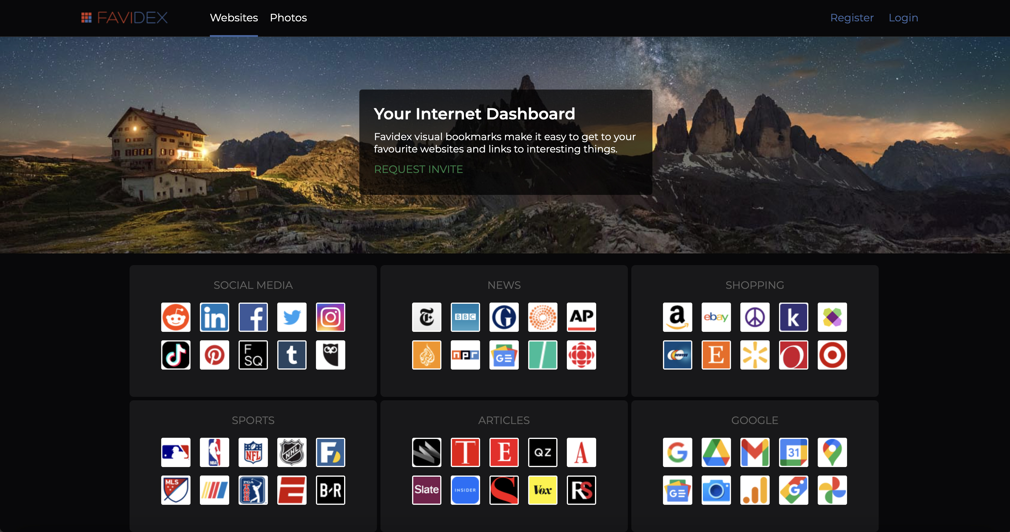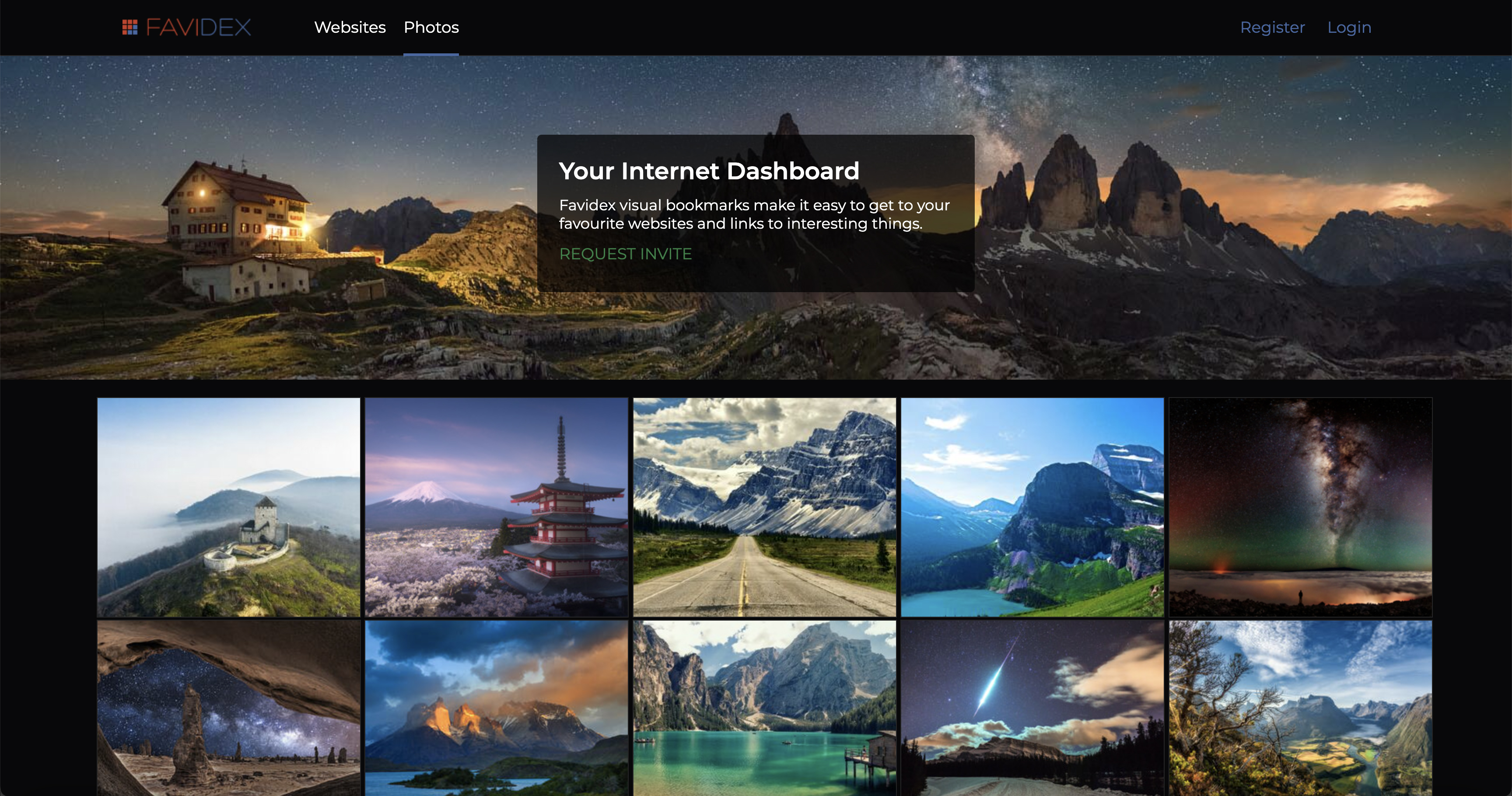 Favidex is a visual bookmarking web application that I designed and coded, to facilitate faster and more user-friendly web browsing experiences. I designed a comprehensive set of UI wireframes and built a web app using HTML, CSS, Javascript, and Ruby on Rails. I launched a photo blog in parallel to development, and engaged an audience of 50,000+ fans across several accounts on Twitter, Facebook, Google+, Pinterest, and Tumblr.